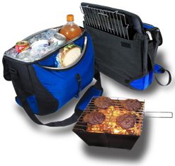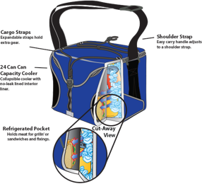 The GrillnChill collapsible cooler and the grill both collapse for easy storage. Mid-size capacity cooler boasts a refrigerated pocket to chill your meat for grill’n.