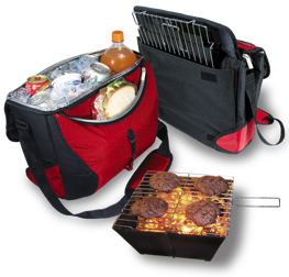 The GrillnChill collapsible cooler and the grill both collapse for easy storage. Mid-size capacity cooler boasts a refrigerated pocket to chill your meat for grill’n.
