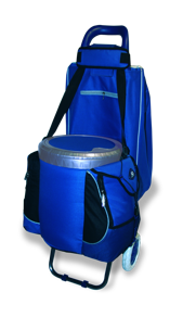 Our Coolest Trolley is designed to hold all your gear in addition to your cooler. The large cooler hangs on trolley and swings down to hold beach blanket and chairs.