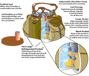 Our Coolest Coolers are the only coolers with iced, refrigerated and dry storage so they provide for all your food storage needs. The unique Refrigerated Pocket keeps your sandwiches, meat for grill’n or cheeses cool & dry. It can also fit additional cans if you’re on a liquid diet! The padded insulated dry pocket protects your smart phones or can be used to store warm goods or chips and snacks. Two mesh pockets hold wallet, glasses etc.