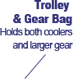 •  Trolley Holds Large or Small Cooler or Both Coolers.